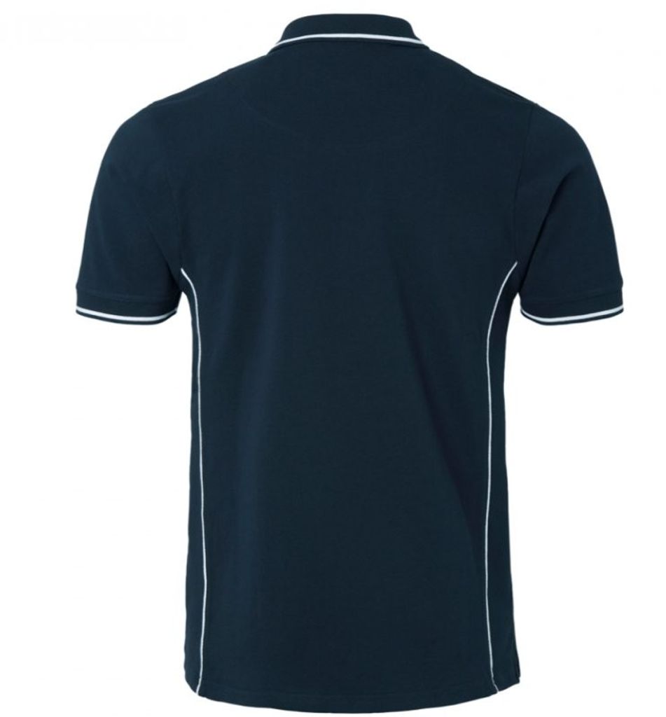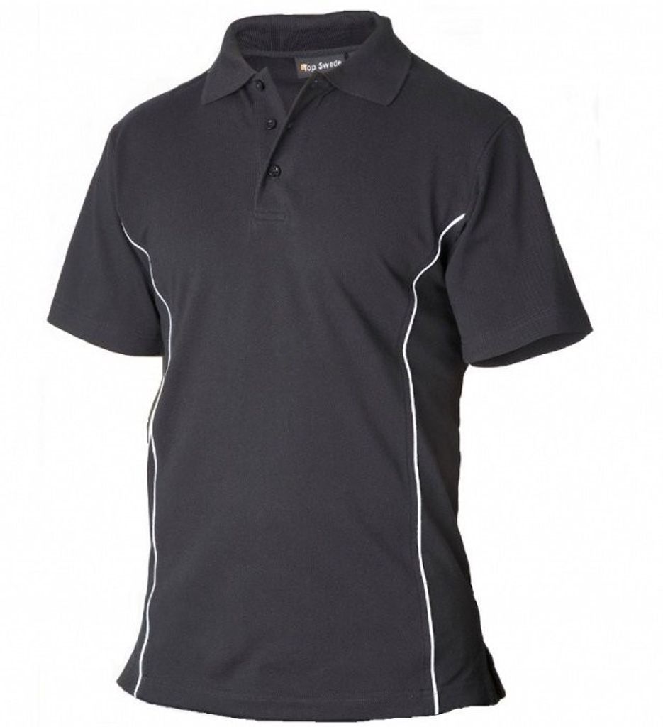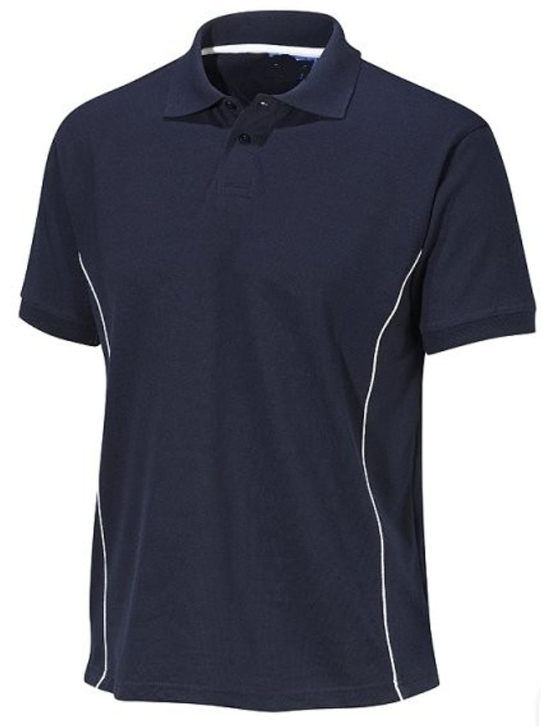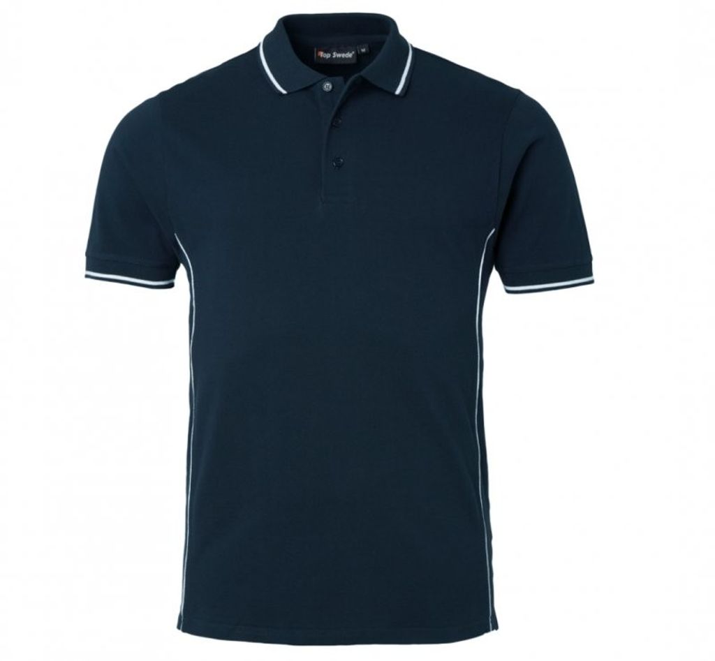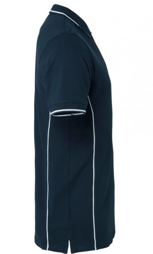 Piké med ribbstickad krage och snygg vit kontrastpiping.