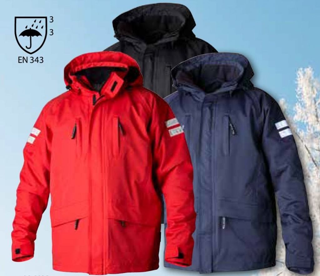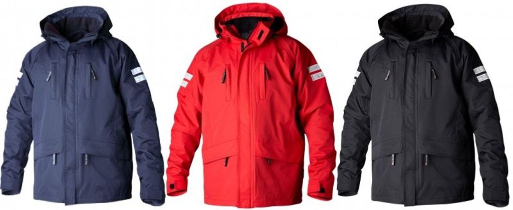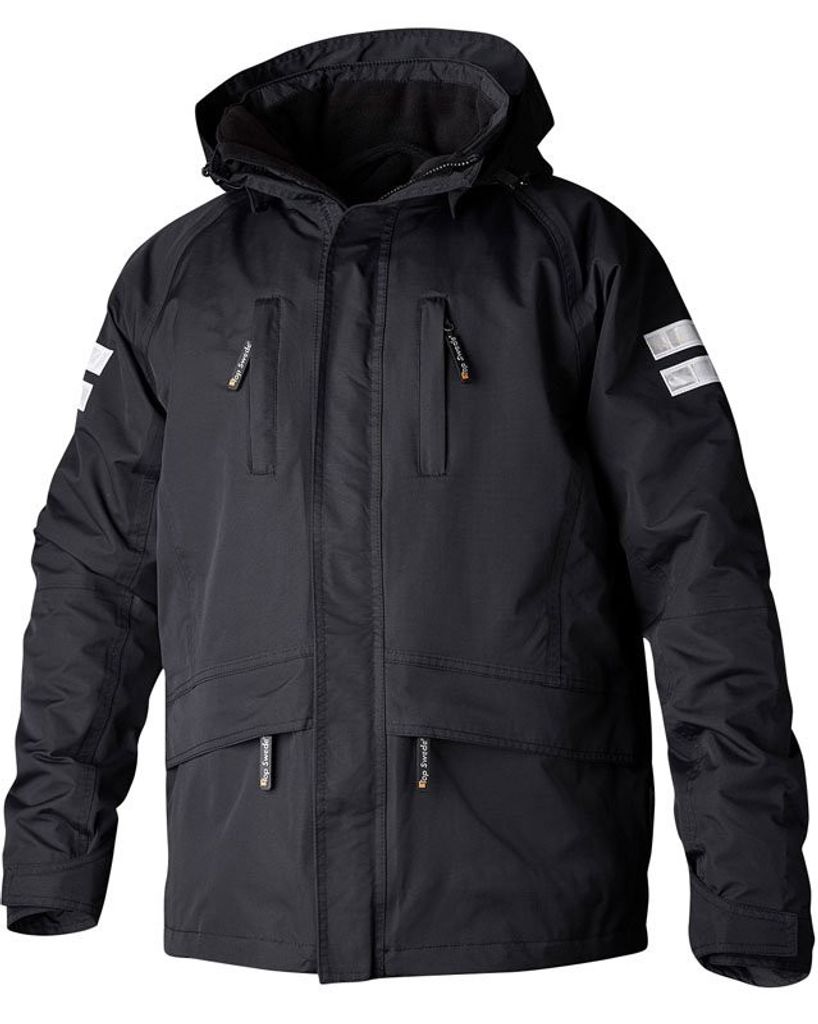 Innerjackan är avtagbar i microfleece. Går bra att använda var och en för sig eller tillsammans. Avtagbarhuva. Reflexdetaljer för bättre synbarhet. Reglerbart ärmslut. Två bröstfickor med dragkedja, två sidfickor med lock och dragkedja på jackans nedre del. Innerficka. Dragsko i midja och nederkant.