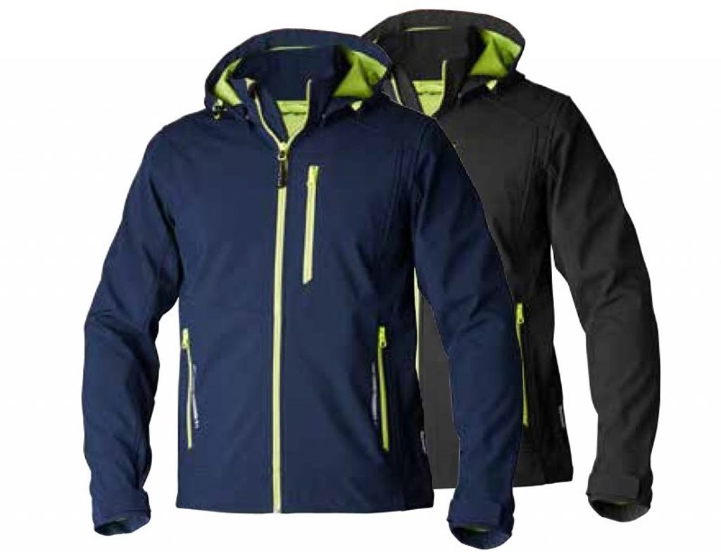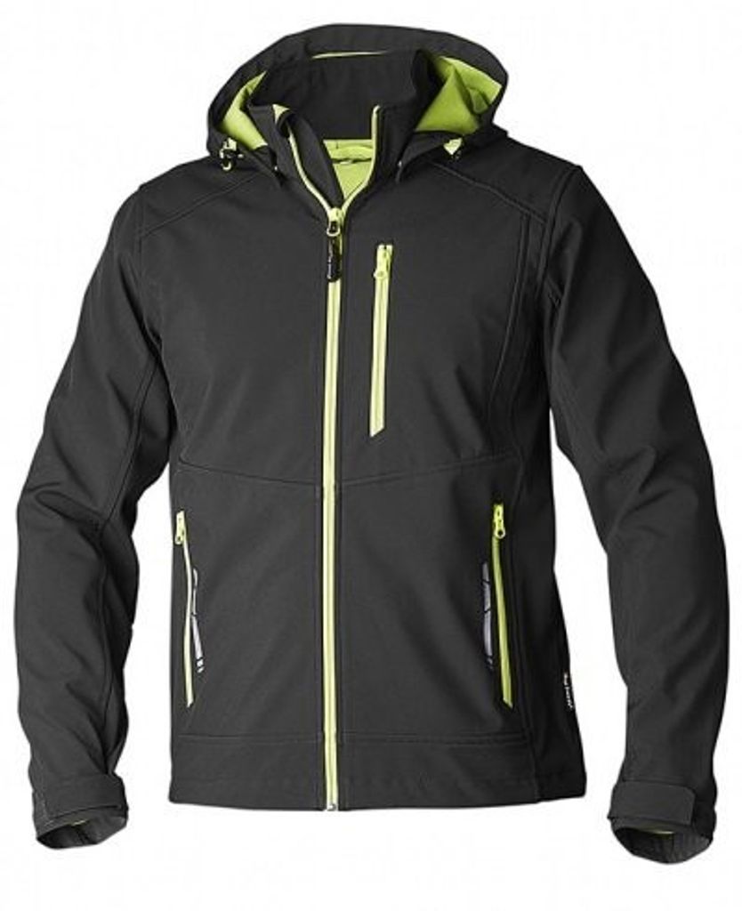 Softshell jacka i 3 lagers softshell. Hel dragkedja med vindslå och kedjeskydd som går ända upp i krage. Avtagbar reglerbar huva. Reflexdetaljer. En bröstficka med dragkedja. Två framfickor med dragkedja. Reglerbart ärmslut. Dragsko i nederkant.