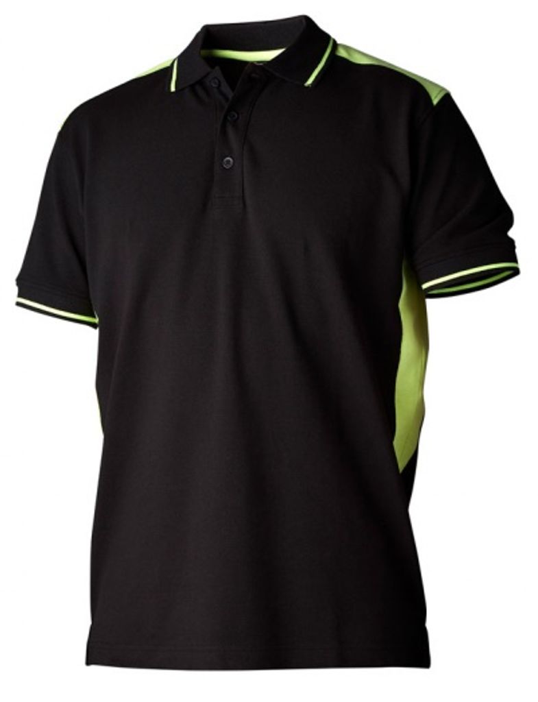 100% bomull, 220 g/m². Ribbstickad krage. Svart eller marin. Vit konstrastpiping. Storlek XS-XXXL.