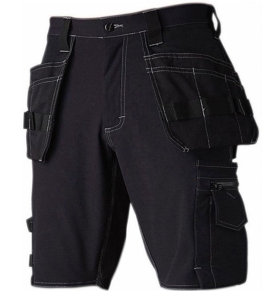 SHORTS 4-VÄGS STRETCH 310 Shorts modern passform i 4-vägs stretch. Två framfickor. Två förstärkta bakfickor med bälg. Löst hängande spikfickor förstärkta med Cordura®. Hängfickorna är utrustade med tre extra fack och verktygshällor. Id-korts ficka. Reglerbar hammarhank. Framflyttad tumstocksficka som är släppt nertill för bättre komfort. Tumstocksfickan är utrustad med två knivhållare, knivhälla och pennficka. Stor benficka med telefonficka.