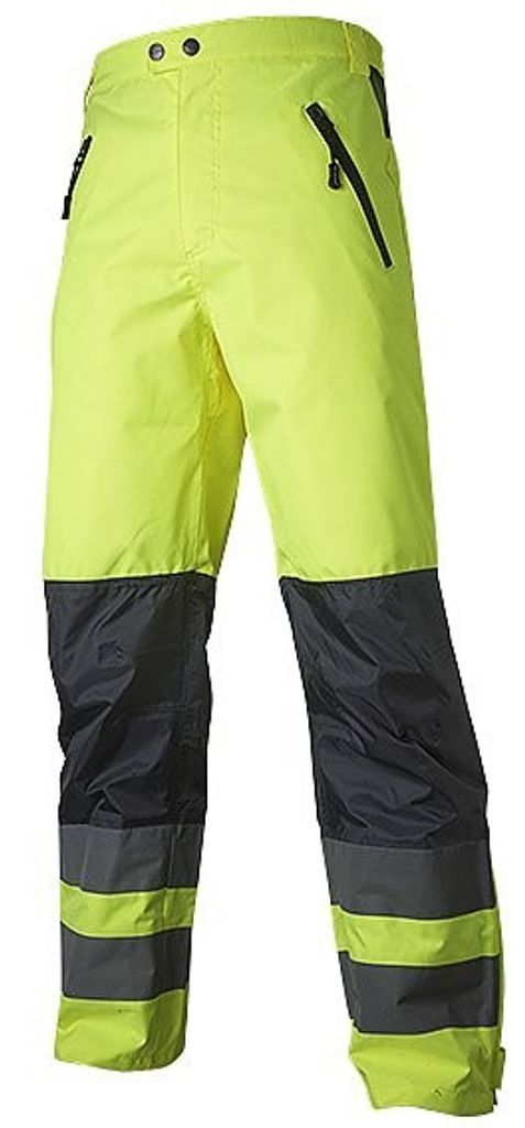 Midjebyxa/transportbyxa klass 1. Benfickor m dold dragkedja. &5% polyester, 35% bomull. Storlek: C46-C62, C146-C156, D96-D120. Marin/Gul