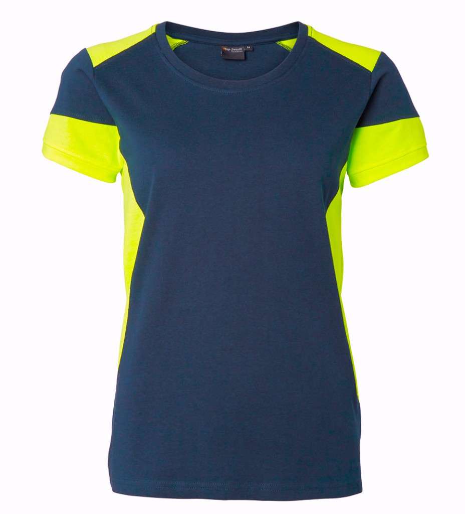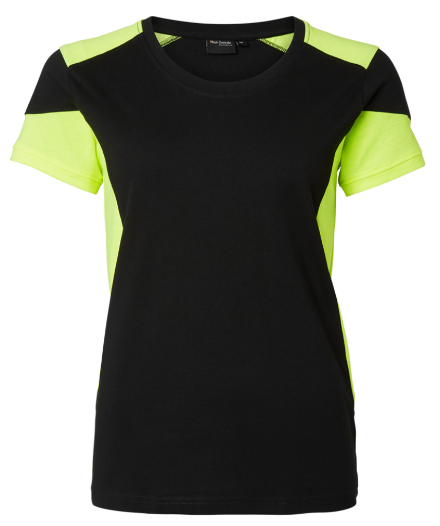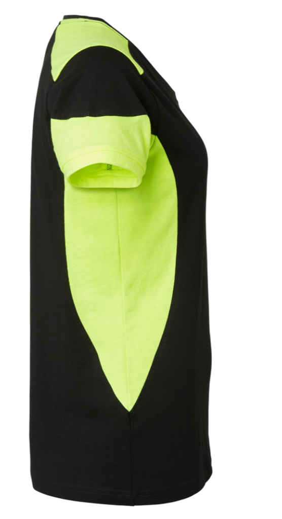 T-shirt dam med förhöjd synbarhet. Rund hals. Dubbel halskant med elastan.
